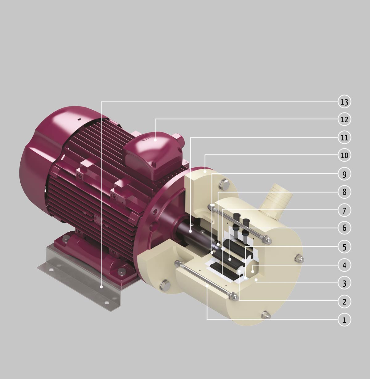 Suitable to transfer low viscosity acids and basic liquids, the internal part in contact with liquid are totally built in thermoplastic (PP-PVDF-PVC), the gaskets and the impeller blades are in a suitable material (EPDM). Standard are installed lip seals in EPDM or FPM.